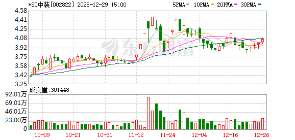 每经AI快讯,12月29日,*ST中装(维权)(002822.SZ)公告称,公司股票于2025年12月30日开市起复牌。公司于2025年12月24日披露了资本公积金转增股本事项实施的公告。股权登记日公司股票收盘价为股权登记日前一交易日(2025年12月26日)公司股票收盘价,即4.07元/股,该收盘价高于本次资本公积金转增股本的平均价格3.62元/股,因此,需要对股权登记日次一交易日(2025年12月30日)的股票开盘参考价进行调整,计算得出的调整后除权参考价格为3.84元/股。