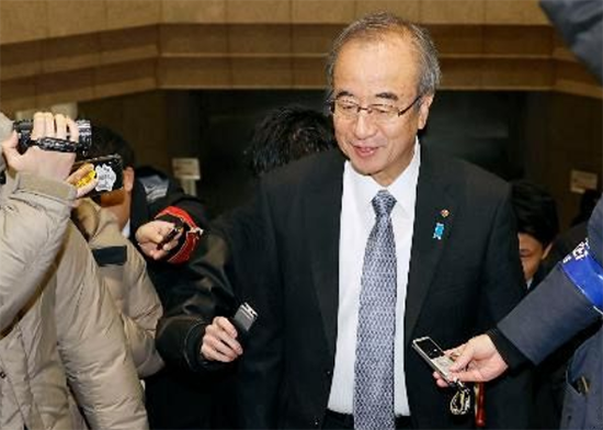 22日,新泻县知事花角英世接受采访东京新闻